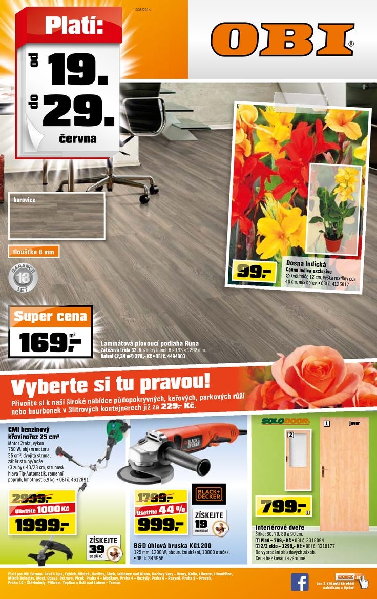 Prohlížíte si akční leták OBI Aktuální leták od 19.6.2014 s platností 19.6.2014- 29.6.2014.